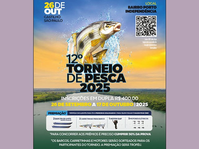 CASTILHO - Conhecida como o "Paraíso do Pescador", Castilho realizará em outubro o XII Torneio de Pesca, um evento que promete reunir os maiores amantes da pesca esportiva da região.